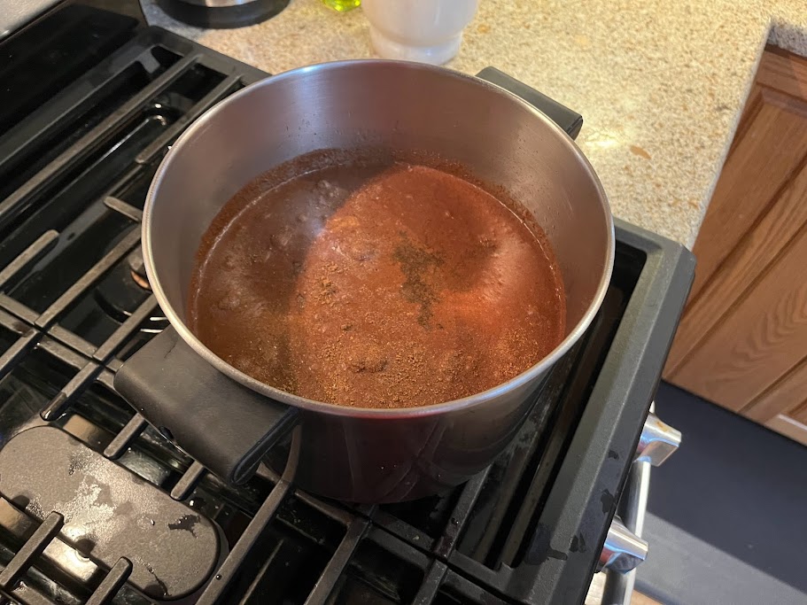 Spices after toasting and grinding. Not everything passes through a sieve by the time its fully ground, mostly with a few bits of star anise sticking around.