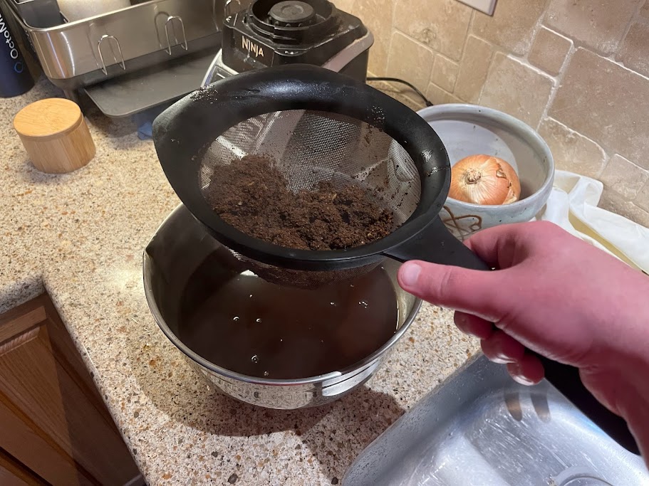 I really should get around to measuring the weight of the strained grounds, to determine how much of the 700 gram difference is due to wet tea leaves, and how much is due to evaporation while simmering.